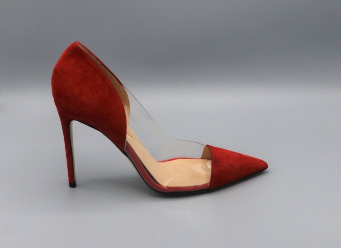 ANA PVC et velours Hauteur de talon 100 Bout semi-pointu Semelle cuir.